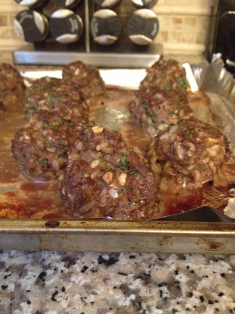 So amidst the last few days worth of sunny weather and super warm temps, we got a stormy crap day with a high of only 60-something (gasp! lol). Since I’d been wanting to try out my new meatball recipe I figured this was a good opportunity since it might be one of the last cooler days which are perfect for a good ‘ol spaghetti and meatball dinner. I came up with this recipe when I was thinking about how I could get rid of the rest of the brown rice I was going to have left over from a meal I had made earlier in the week. I figured that they would make a good substitute for the bread or breadcrumbs I usually use in my meatball recipe. All excited about having thought of the first ever meat and rice meatball, I hopped on the internet and found out, it already exists in the form of a “porcupine” which is apparently some sort of retro recipe staple which utilizes rice, meat and V8 or something like that. Regardless of my lack of originality I figured I would simply adapt my recipe for regular Italian meatballs to include brown rice and at the same time lighten them up into my own healthy little porcupine :).