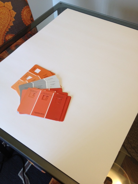 I chose colors that complimented our home’s color scheme, in case you’re into paint colors they are all Valspar. From right to left: Terra Cotta Red, Desert Rose, Roasted Squash, Hazy Stratus, Toasted Apricot, Urban Sunrise and Apricot Honey.
