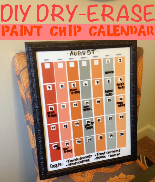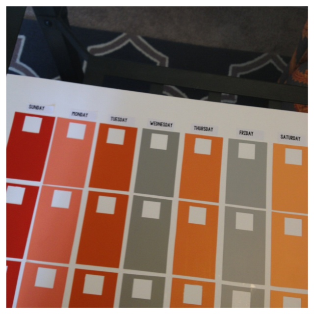 Once I got home this took me about 45 minutes to put together and since it didn’t require any hazardous materials I was even able to do it in the presence of baby P! The frame was a thrift store find that I had redone (aka hit with some spray paint) when we were planning on putting up a gallery wall in the old house (more on that later, as we’ll be putting up a smaller scale gallery wall in this house soon!), so the frame was essentially free which means that this project cost me ninety-seven cents (the cost of the poster board)!!! I can’t wait to hang it in my command center as part of my new and improved laundry/mudroom. Apparently we really needed this calendar too, when my hubby got home and I showed it to him he all sorts of questions about the events on it, none of which he knew were happening, lol. Here is my tutorial, it’s quick, easy and can be customized to fit any color/decor scheme!