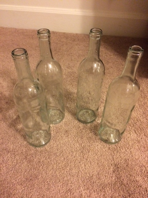 Step 1: I began by removing the labels from my wine bottles by soaking them in some warm soapy water then scrubbing off with a sponge. Since I drink relatively cheap wine the labels remove pretty easily but if yours are a little more stubborn Goo-Gone will take them right off.