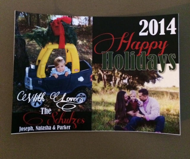Additionally, sometimes the freedom to customize the card to your liking and be able to run up and get extras at your convenience is savings enough. So after my success with J’s invitation I proceeded to use this same idea for a friend’s baby shower invitations, Baby P’s first birthday invites and even my 2014 Christmas card! While I’m sure there are lots of Photoshop tricks that would improve on my method drastically, if you don’t own Photoshop (or you’re like me and own it but are unsure of it’s mysterious ways, lol) this is a great method to creating some cute cards in a pinch, all you need to know are a few simple functions in Microsoft Word and then simply allow your local print store to do the rest!