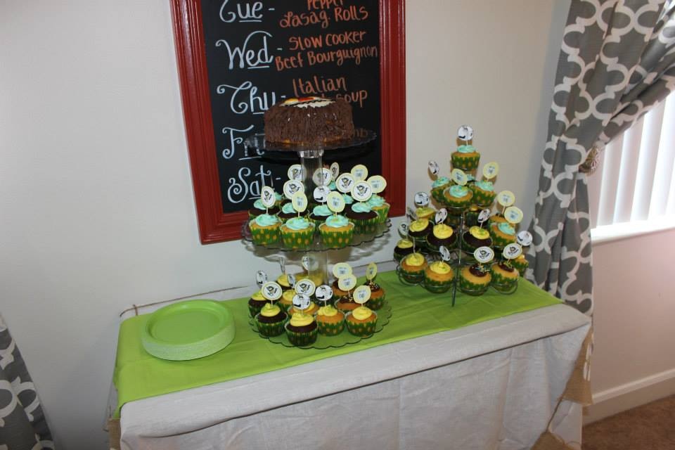 As for the cupcake toppers they were a last minute DIY idea for when I decided that I was going to forgo the idea of having a professional make the cupcakes and smash cake and make them myself. While I’ve gotten crafty with cupcake decorating in the past (check out my margarita and patriotic cupcakes!) I knew that since I needed about sixty cupcakes I didn’t want to commit to any type of elaborate design. In searching various online retailers I came across some pretty adorable cupcake toppers, even some that were already customized to my theme, but in an effort to save some addition money I decided to just create them myself by using Microsoft Word to create little circles with various WTWTA images inside (see my post on DIY Invites & Greeting Cards without Photoshop for more on making some simple designs without fancy computer programs). Once my little circles were printed all I had to do was cut them out and use a glue stick to glue them together around a standard toothpick. While the process was a little tedious it was a super easy and FREE way to jazz up my box cupcakes!