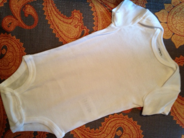 • Since you don’t need anything fancy use the cheapest brand of white onsies you can find, I believe Walmart carries a Gerber brand 10-pack for around $8.00.