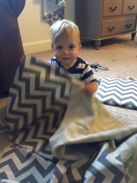 Baby P playing peek-a-boo with the fabric, lol!