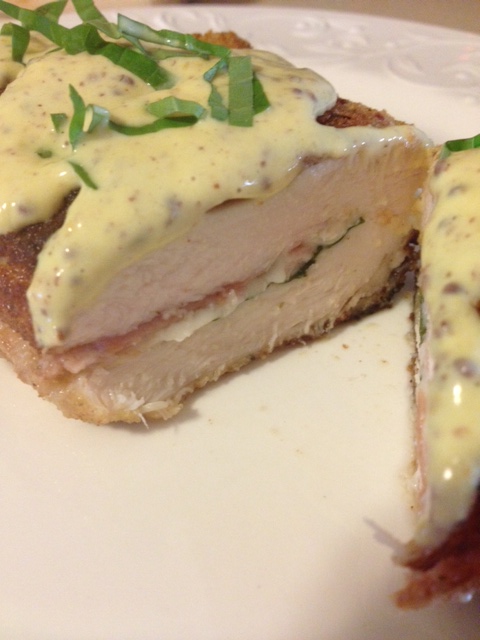 Step 7: Lay your roll on a cutting board, wet a sharp knife and gently cut the roll into six equal pieces. Ta-da! Beautiful chicken-y goodness ready to be devoured! Even though this roll’s ingredients are not traditional, I still serve mine up with soy sauce, wasabi, ginger and of course sake 🙂