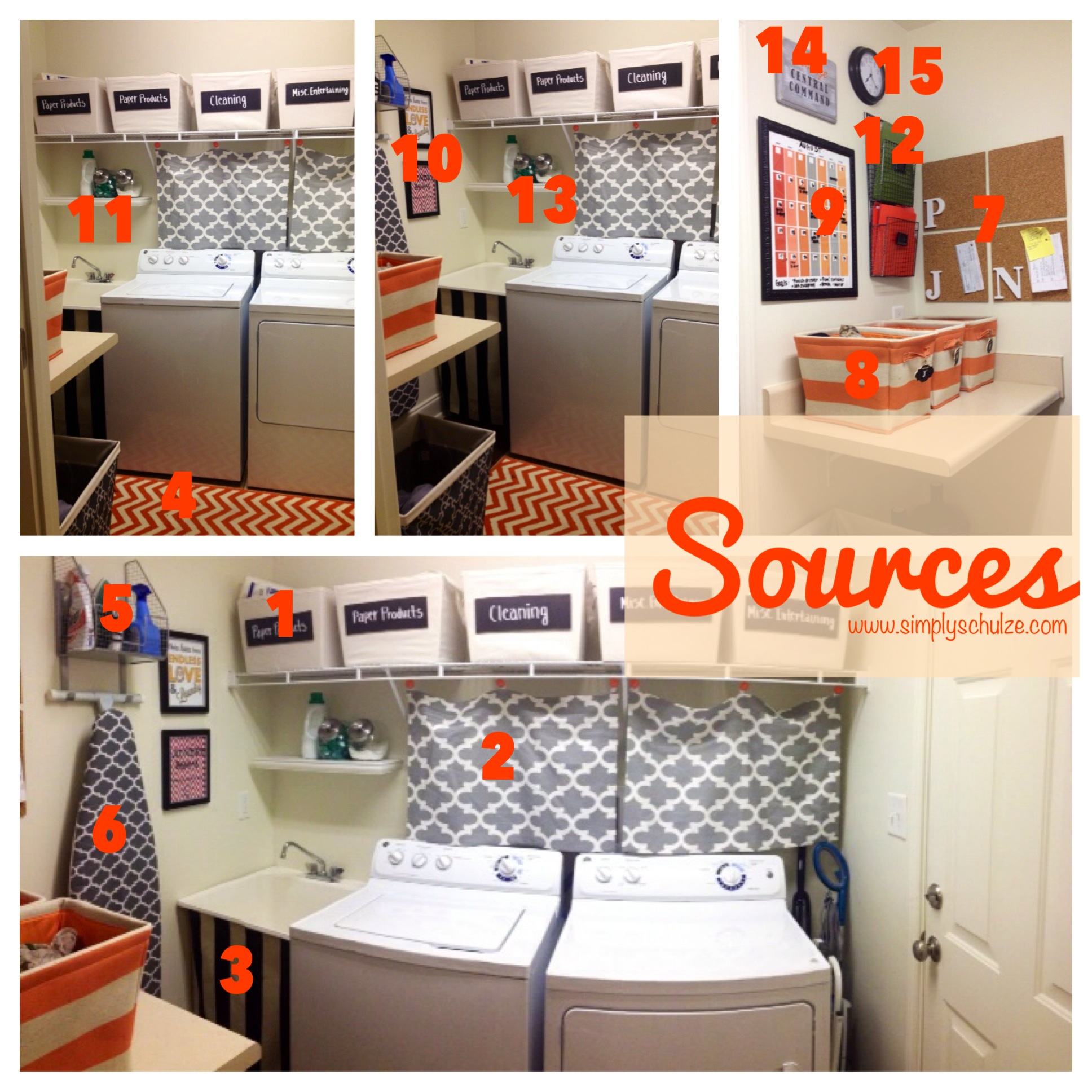 10 // Laundry Room Printables – I printed and framed these two free printables I found via Pinterest: “This home has endless love and laundry” and “Laundry, drop your pants here”.